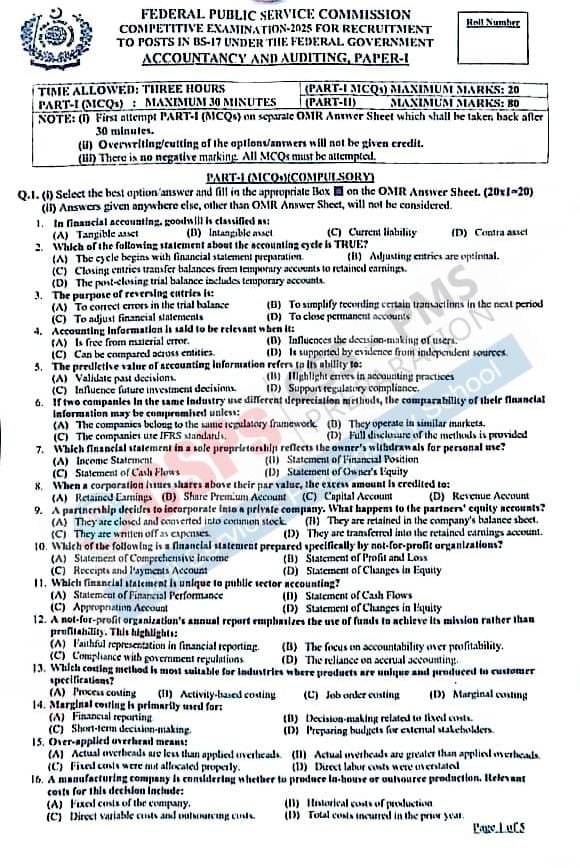 CSS 2025 Accountancy and Auditing Question Paper (1) CSS 2025 Accountancy and Auditing Question Paper (2)