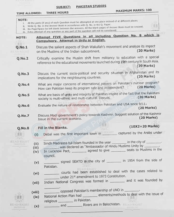 PMS Pakistan Studies Question Paper 2023 For more question papers about CSS and PMS, visit now. Click here